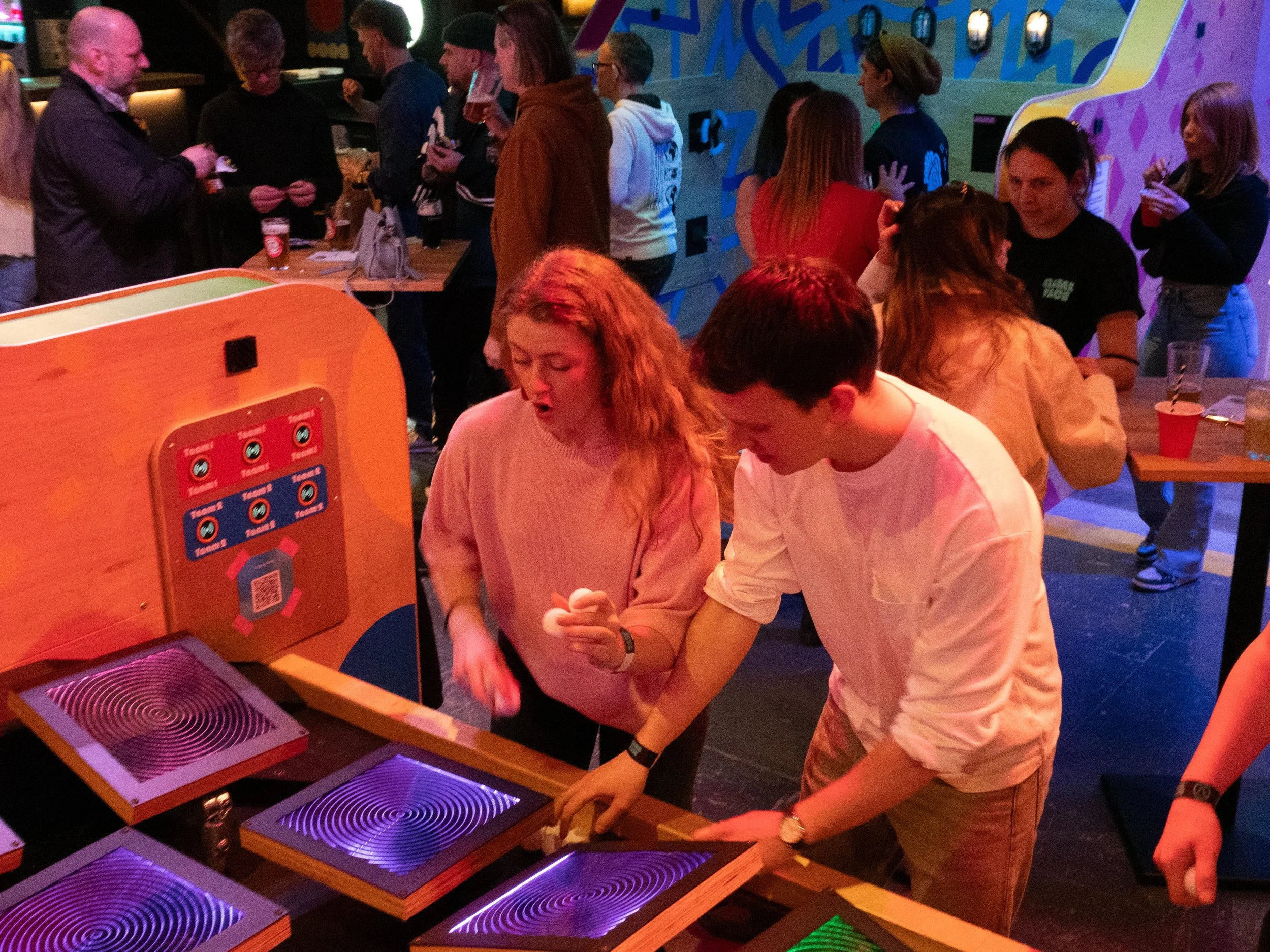 It works well because it blends structured gameplay with social space, giving groups multiple ways to engage. It caters for: